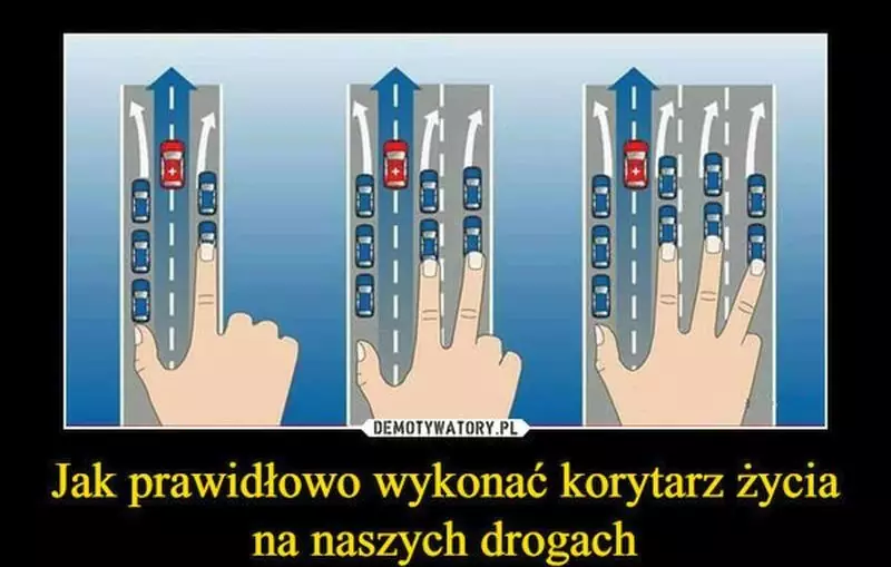 Nie jest więc powiedziane, że takie rozwiązanie może być stosowane tylko na drogach ekspresowych czy autostradach. Wykonanie takiego manewru na zwykłym skrzyżowaniu jest jak najbardziej konieczne. Wyobraźmy sobie kilka pasów ruchu. Kierowca pojazdu uprzywilejowanego powinien poruszać się bliżej lewej części jezdni. Jego zadaniem jest przejazd w taki sposób, by optymalnie wykorzystać przestrzeń, którą ma do dyspozycji. Jeżeli jednak wszystkie pasy są zajęte, powinno stworzyć się korytarz życia. Wszyscy więc kierowcy, którzy stoją na lewym pasie, najbardziej zewnętrznym powinni przesunąć auta maksymalnie na lewe pobocze. Kierowcy poruszający się pasami po prawej stronie od lewego, skrajnego powinni ustawić auta wykorzystując wolne przestrzenie po prawej stronie. Dzięki temu między pierwszym pasem od lewej i drugim pasem od lewej wytworzy się wspomniany korytarz życia. Dzięki temu dojazd do wypadku na drodze będzie zdecydowanie korzystniejszy.